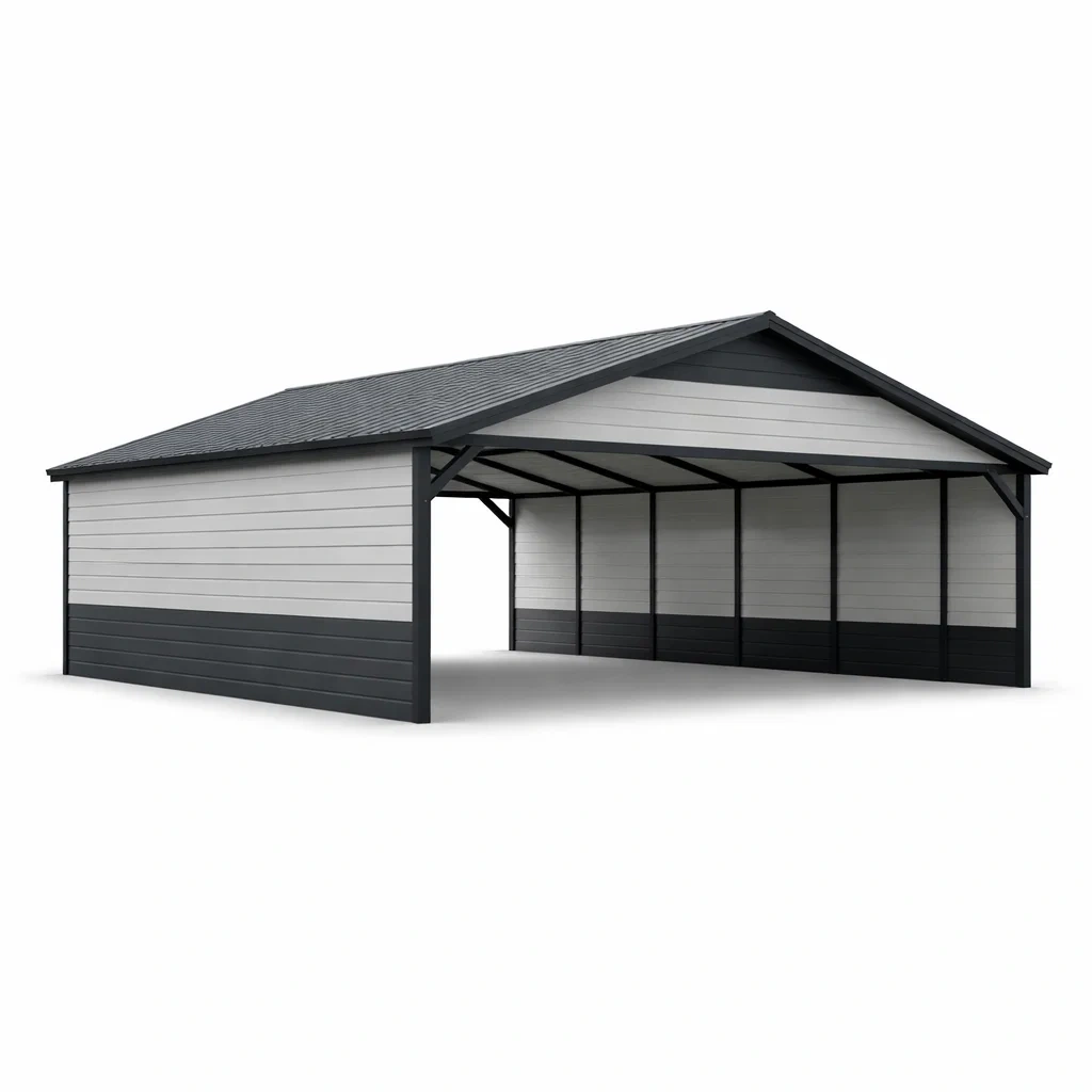Abri pour voiture en acier galvanisé gris avec structure fermée