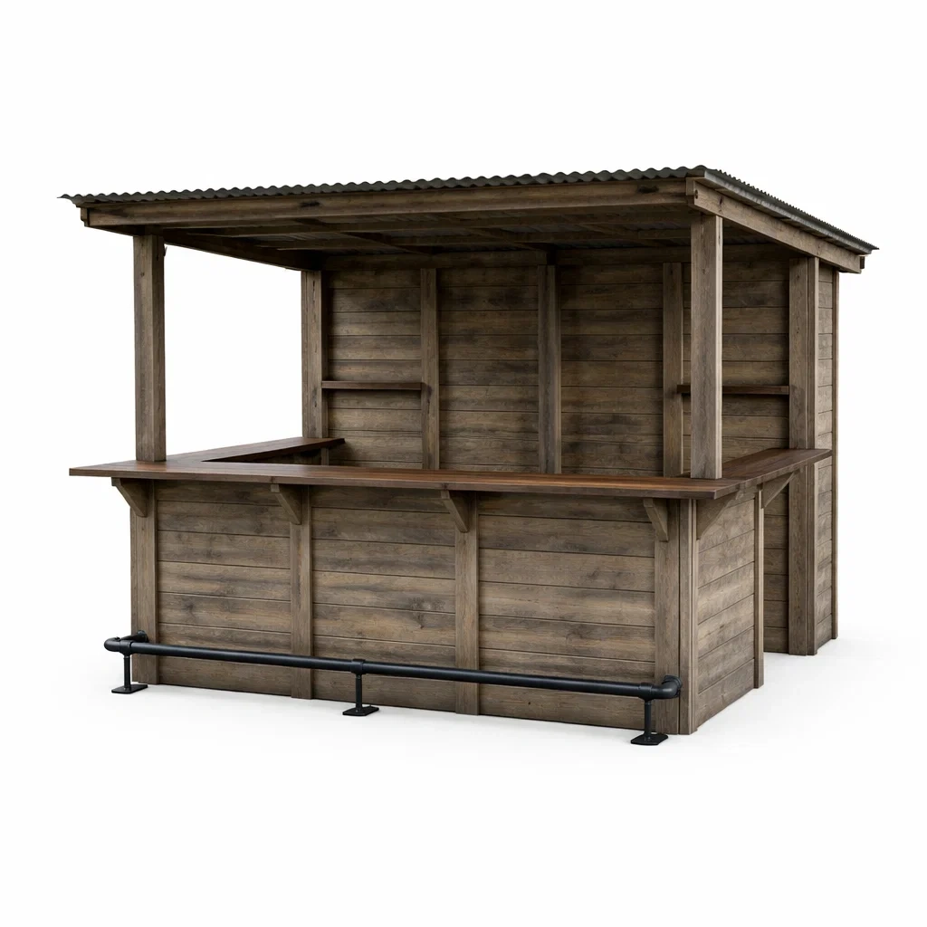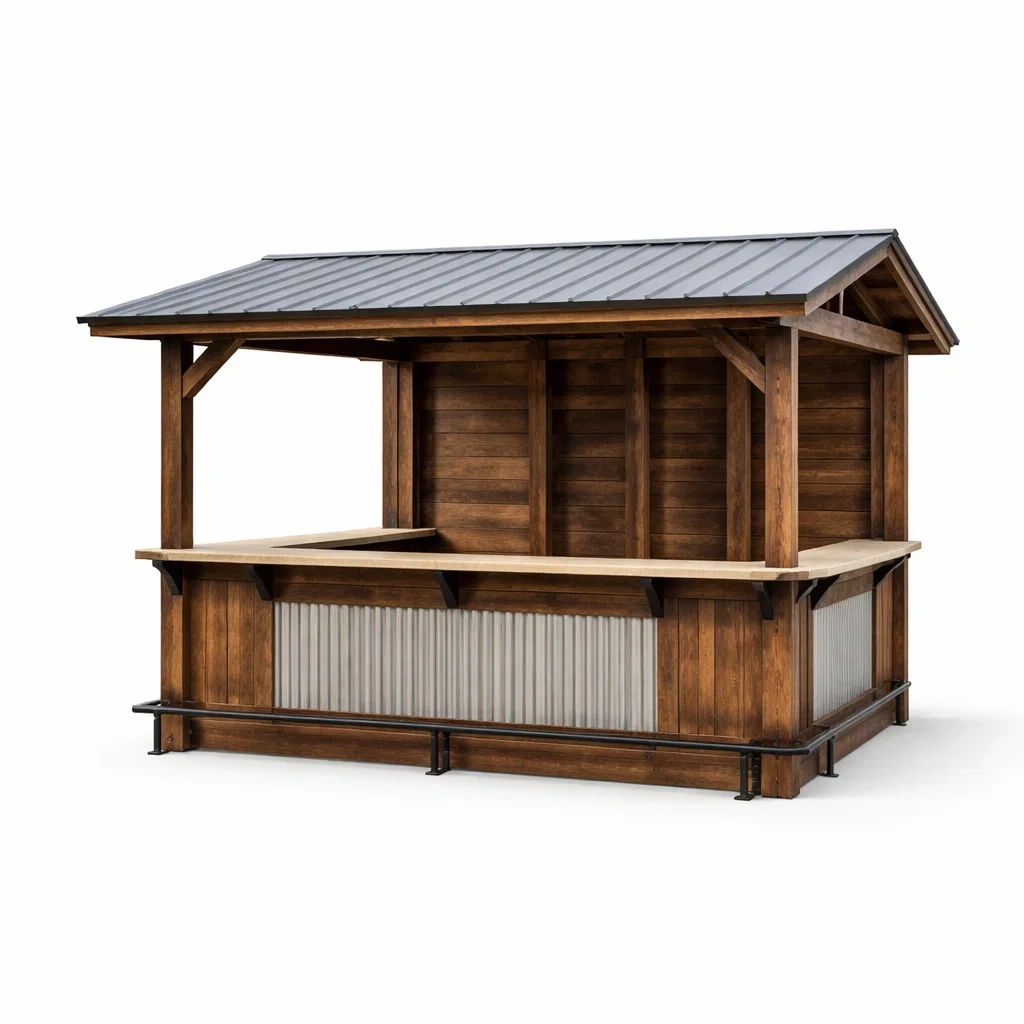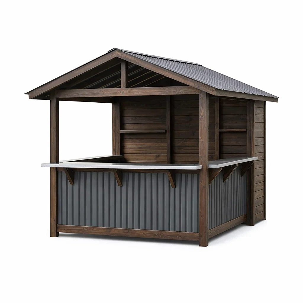 Kiosque bar de jardin avec comptoir en bois et métal ondulé