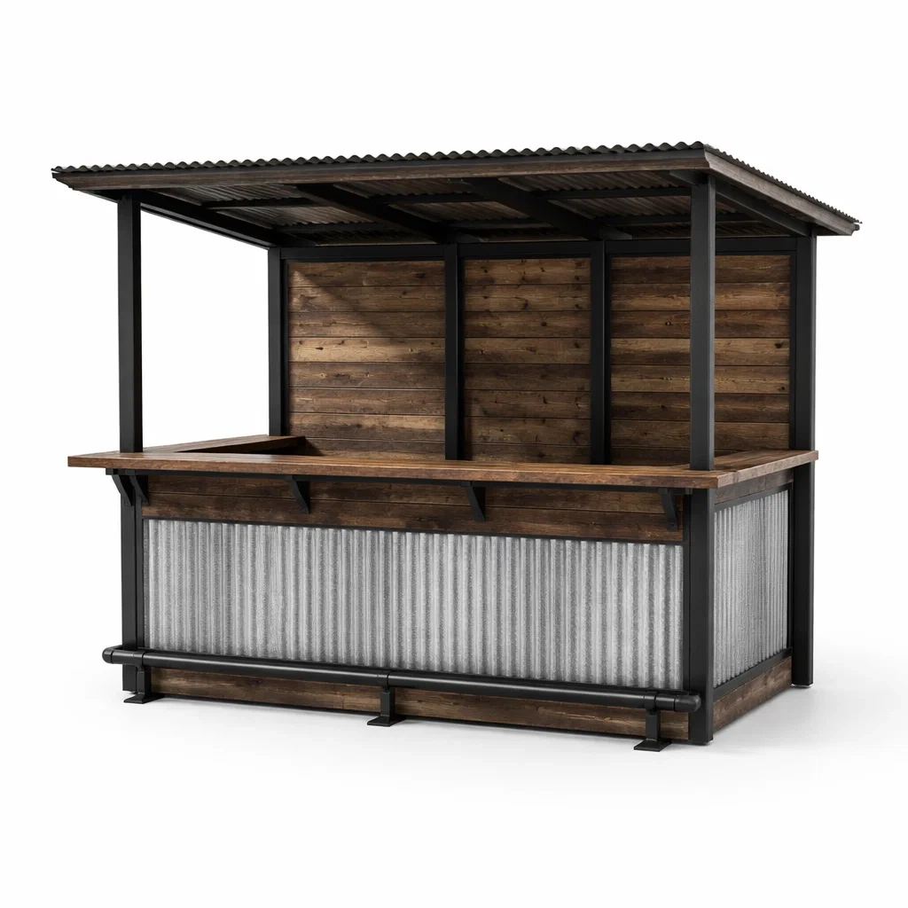 Kiosque bar de jardin en métal et bois avec tôle ondulée