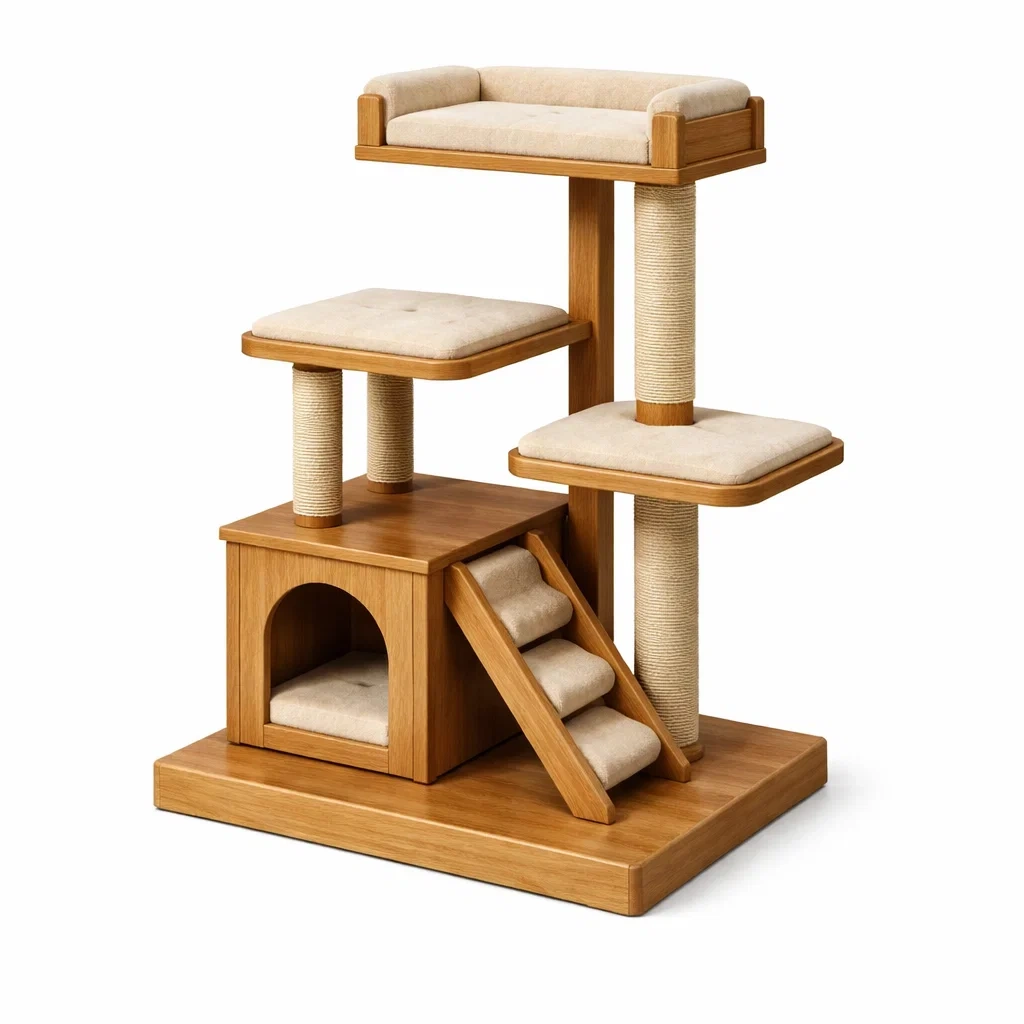 Matériau : Bois massif, poteaux recouverts de sisal, coussins en textile polyester.