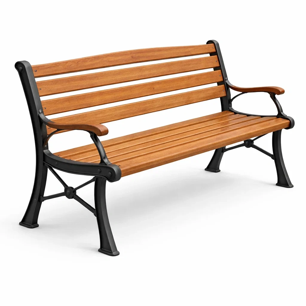 Siège et dossier en bois d'acacia, cadre en fonte.
