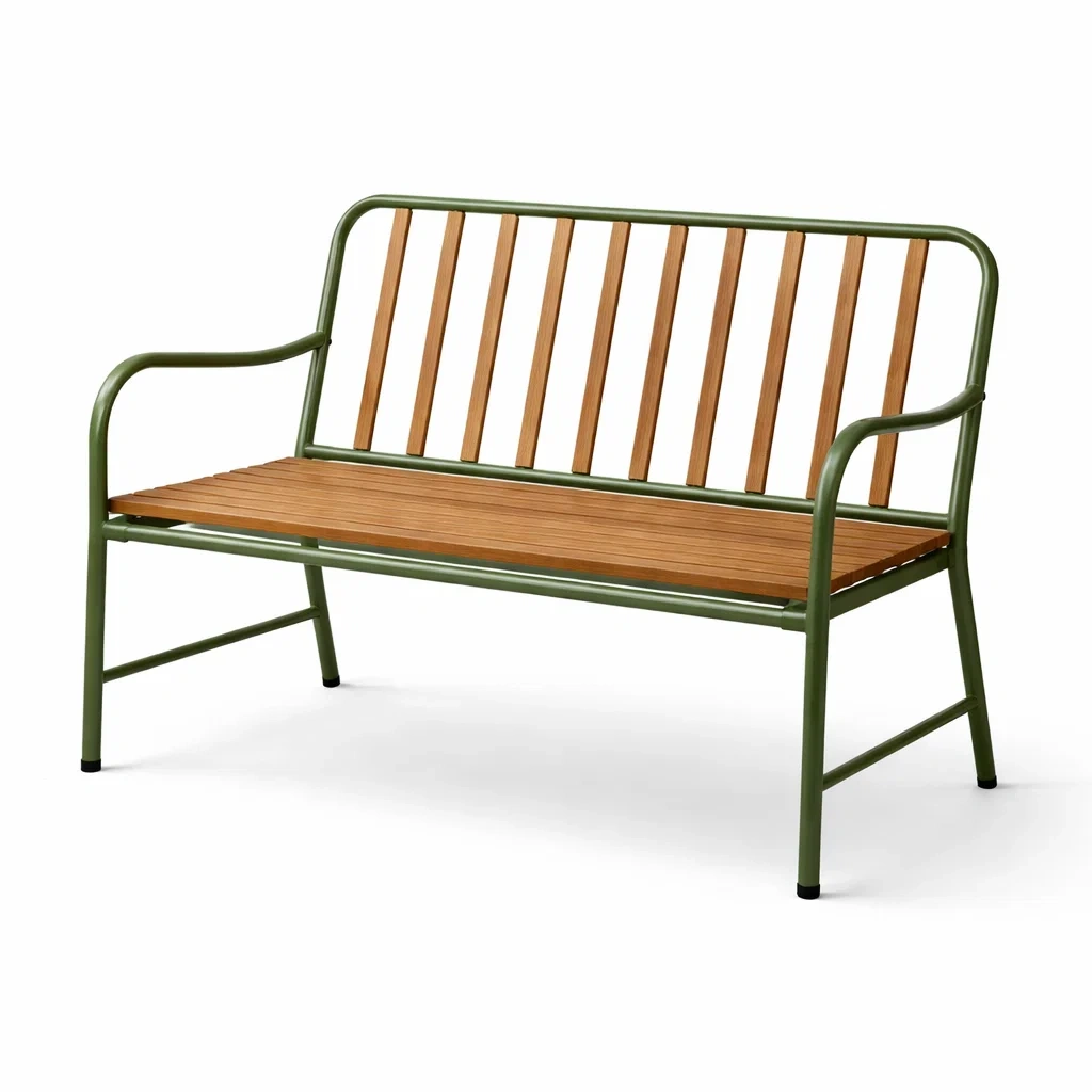 Structure en acier thermolaqué avec une assise en bois de teck.