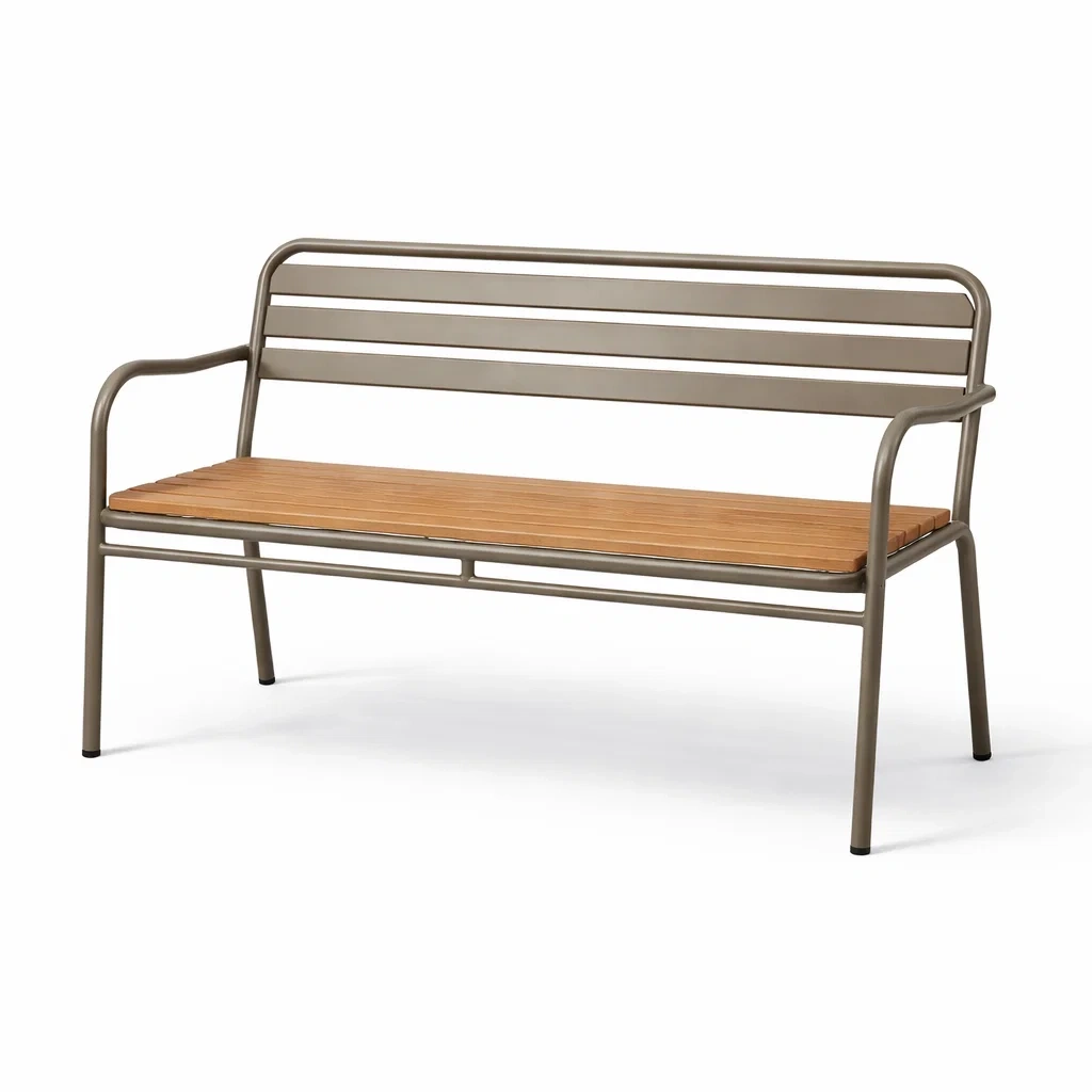 Matériau : Structure en acier, assise en teck, revêtement en poudre.