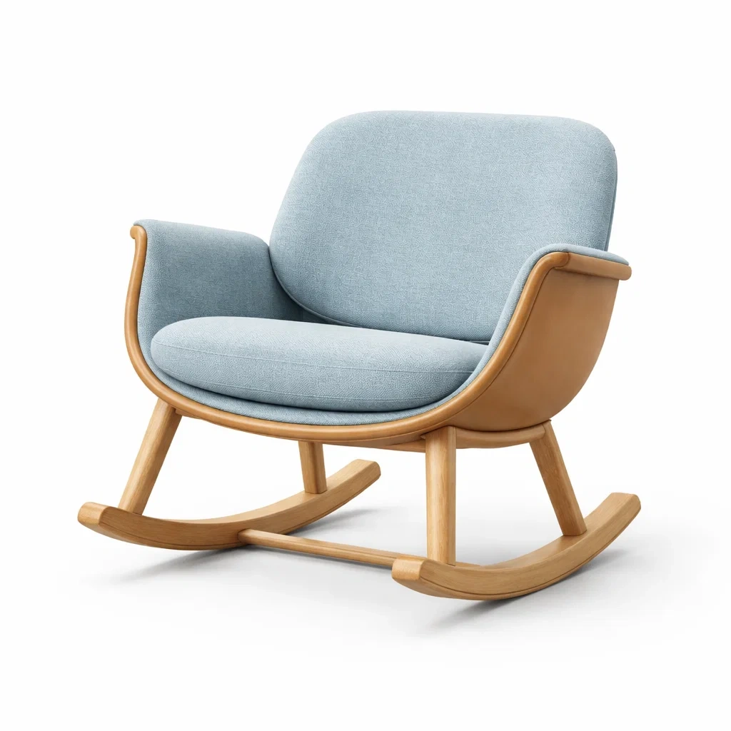 Fauteuil à bascule en tissu polyester et bois massif